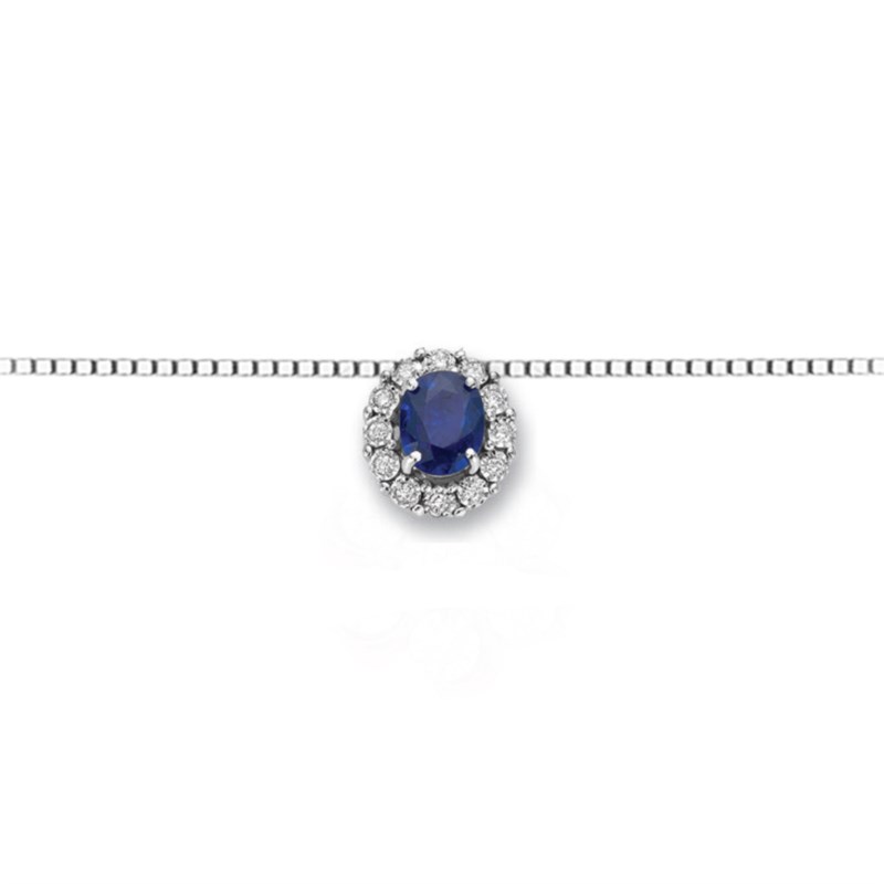 Collana donna donnaoro, DHPZ9401.005, collezione ARCOBALENO , in oro bianco 18kt con diamanti 0, 05ct e zaffiro 0, 42ct