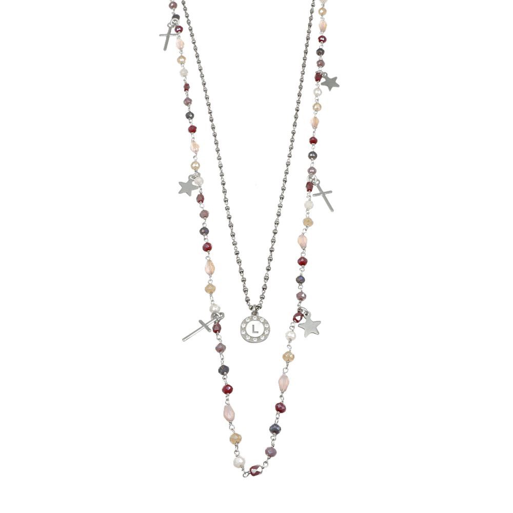 Collana donna dvccio, Clp200, collezione dea, in argento 925, con zirconi e lettera L, lunghezza 65cm