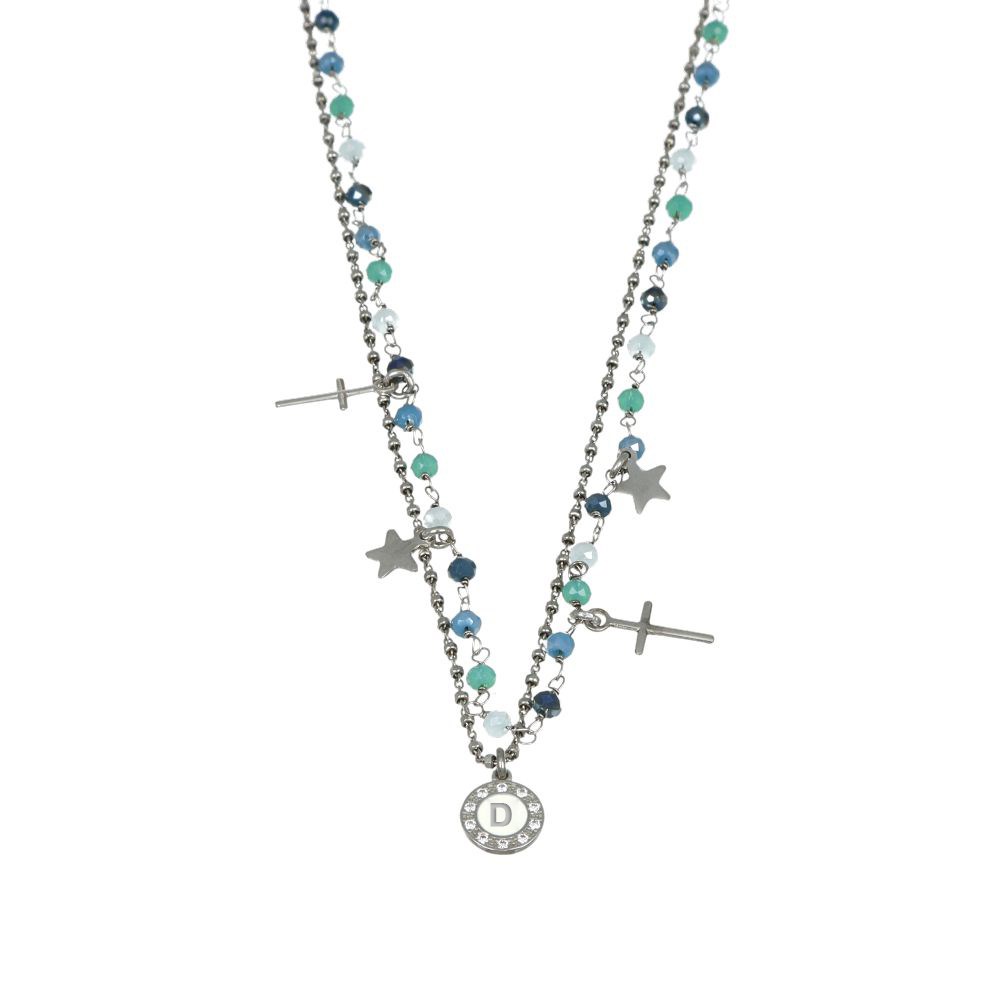Collana donna dvccio, Cp100, collezione dea, in argento 925 con zirconi e lettera D
