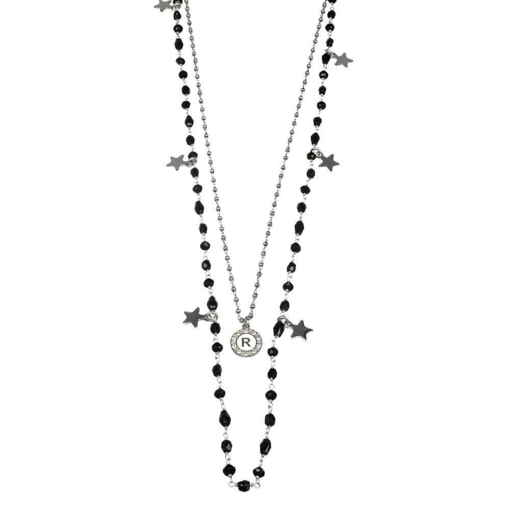 Collana donna dvccio, Clp500, collezione dea, in argento 925, con zirconi e lettera R, lunghezza 65cm