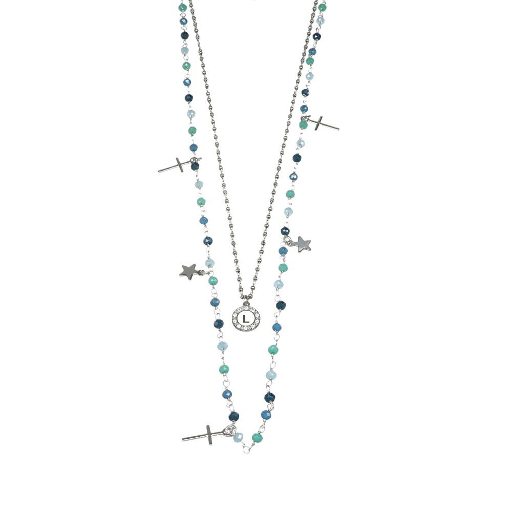 Collana donna dvccio, Clp100, collezione dea, in argento 925, con zirconi e lettera L, lunghezza 65cm
