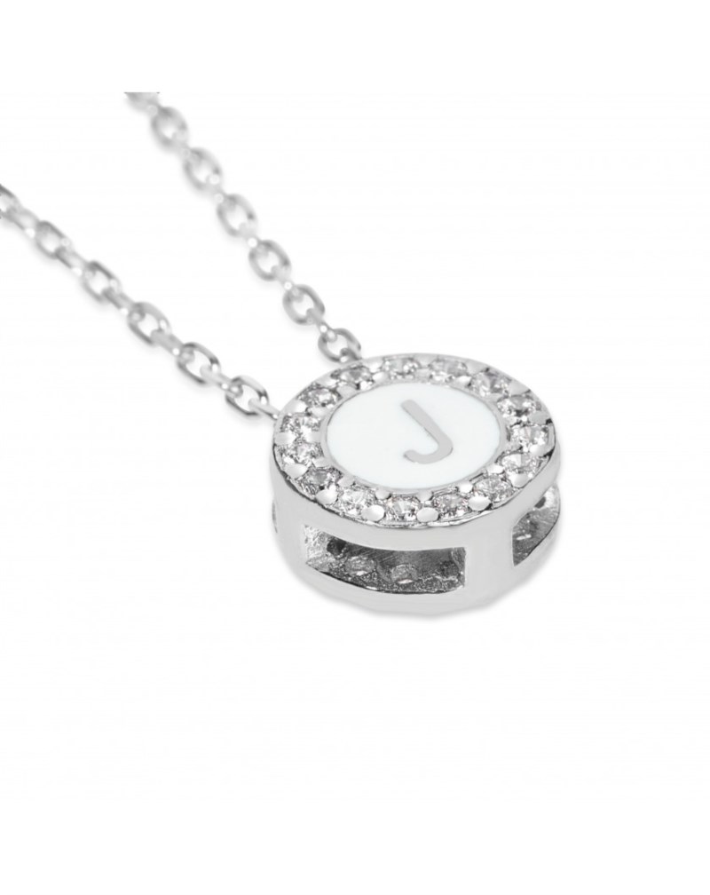 Collana donna dvccio, zxcdab40/w/i, collezione double face, in ottone rodiato, pendente lettera i con zirconi, fronte nero e retro bianco, lunghezza 40cm