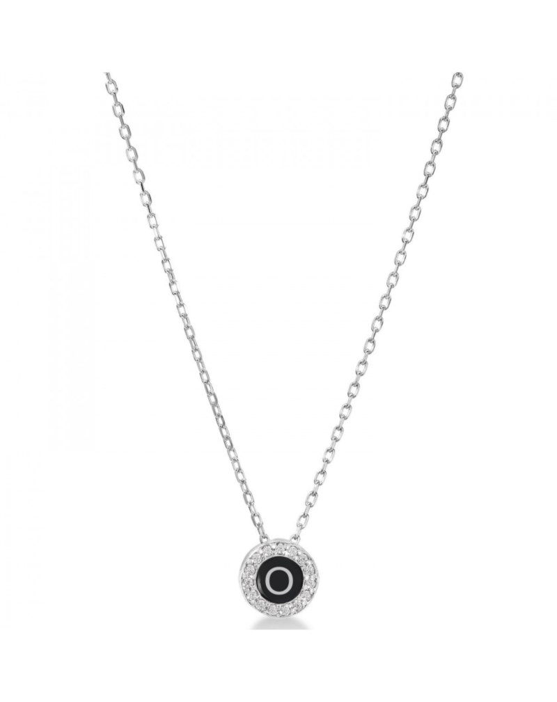 Collana donna dvccio, Zxcdab40/w/o, collezione double face, in ottone rodiato, pendente lettera O con zirconi, fronte nero e retro bianco, lunghezza 40cm