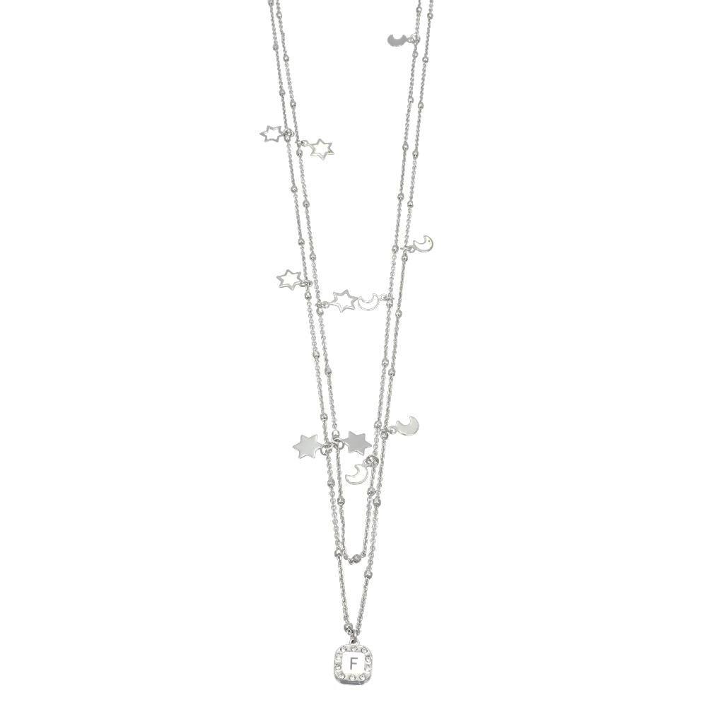 Collana donna dvccio, CL130HELEAG-W-F, collezione grace, in argento 925 placcato in oro bianco e lettera pendente F, misura 130cm