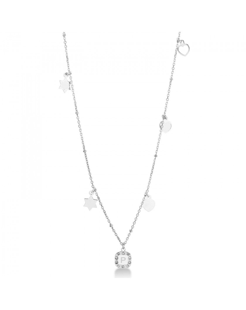 Collana donna dvccio, zxc40hele/w/p, collezione hele, in ottone, pendente con lettera p con zirconi e charms cuori e stelle, lunghezza 40cm