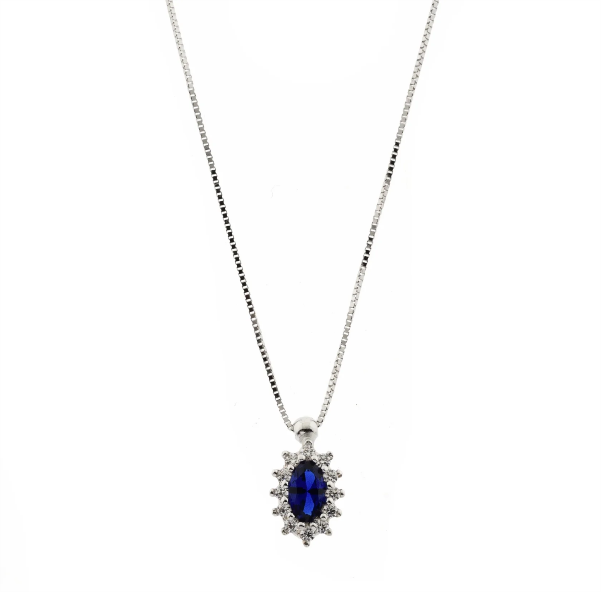 Collana donna facco gioielli, 766043, collezione gemme d'oro, in oro bianco 18kt e zircone zaffiro, lunghezza 45cm con possibilità di chiusura a 42cm
