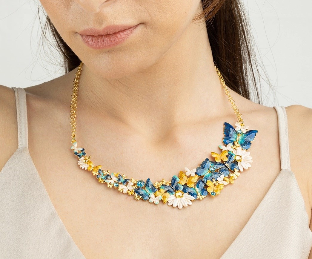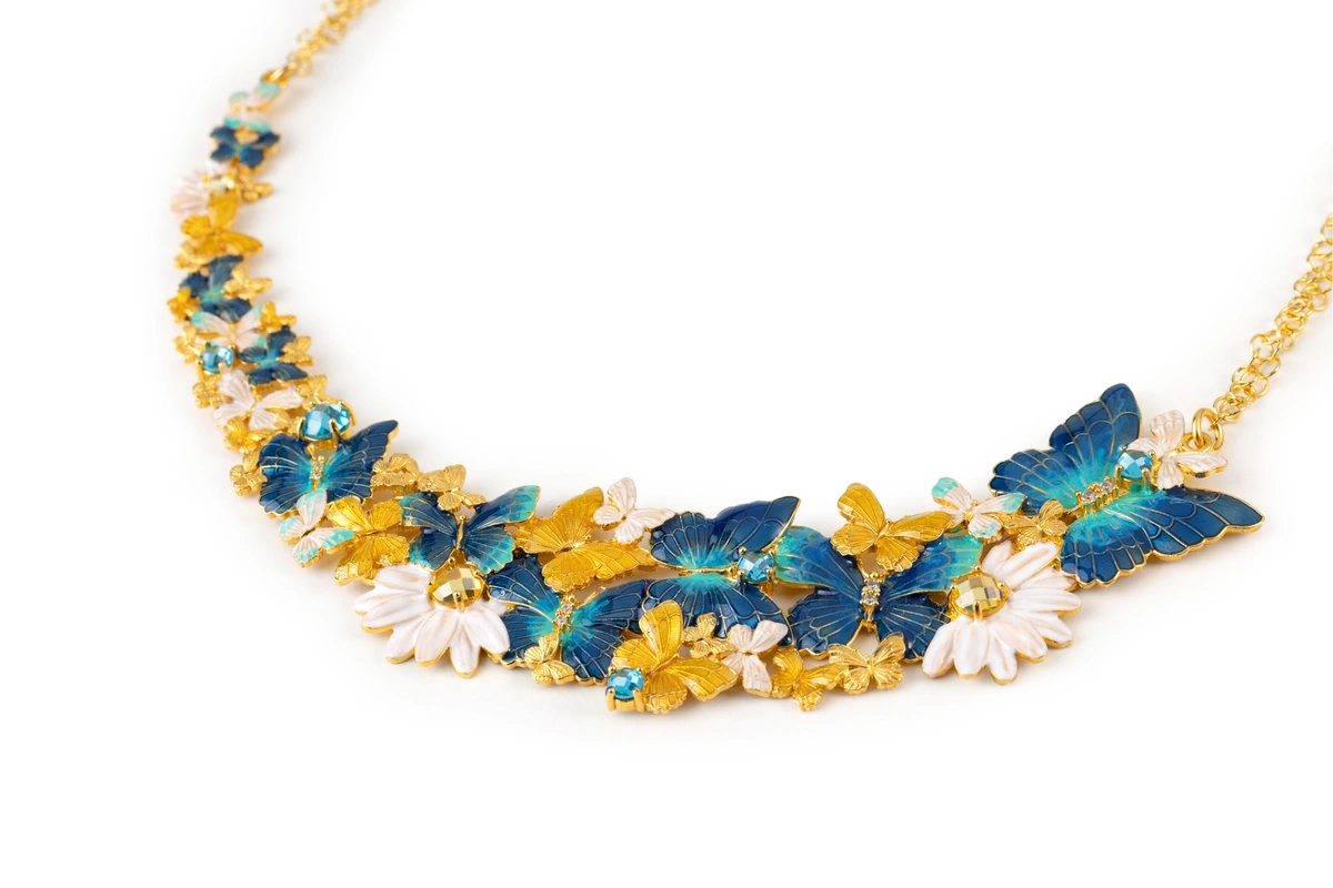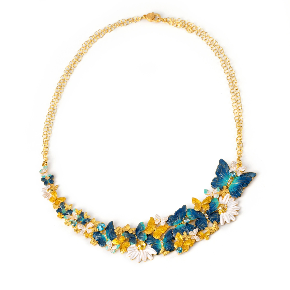 Collana donna isola bella, 20001335, collezione aurora, in argento 925 placcato oro con zirconi e smalti Un insieme di bellissime farfalle si posano leggere su candide margherite impreziosite da Cubic Zirconia.