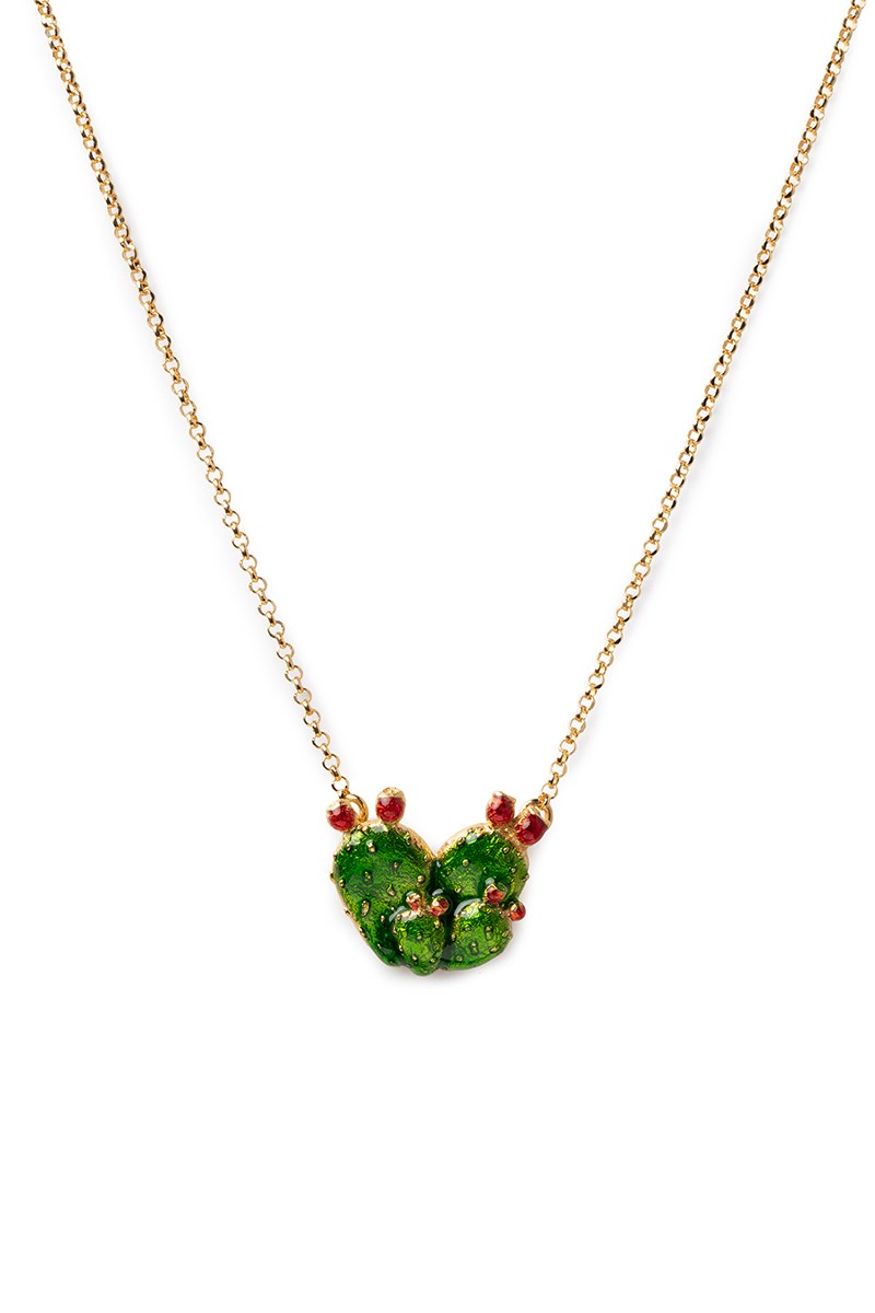 Collana donna isola bella, 20001168 COLLANA FICHI D’INDIA, collezione pendenti, in argento 925 placcato oro con smalti. Gioiosa, colorata, unica. La Sicilia risplende negli smalti luccicanti e nella forma inconfondibile della Pala di fico d’india, una vera icona locale.
