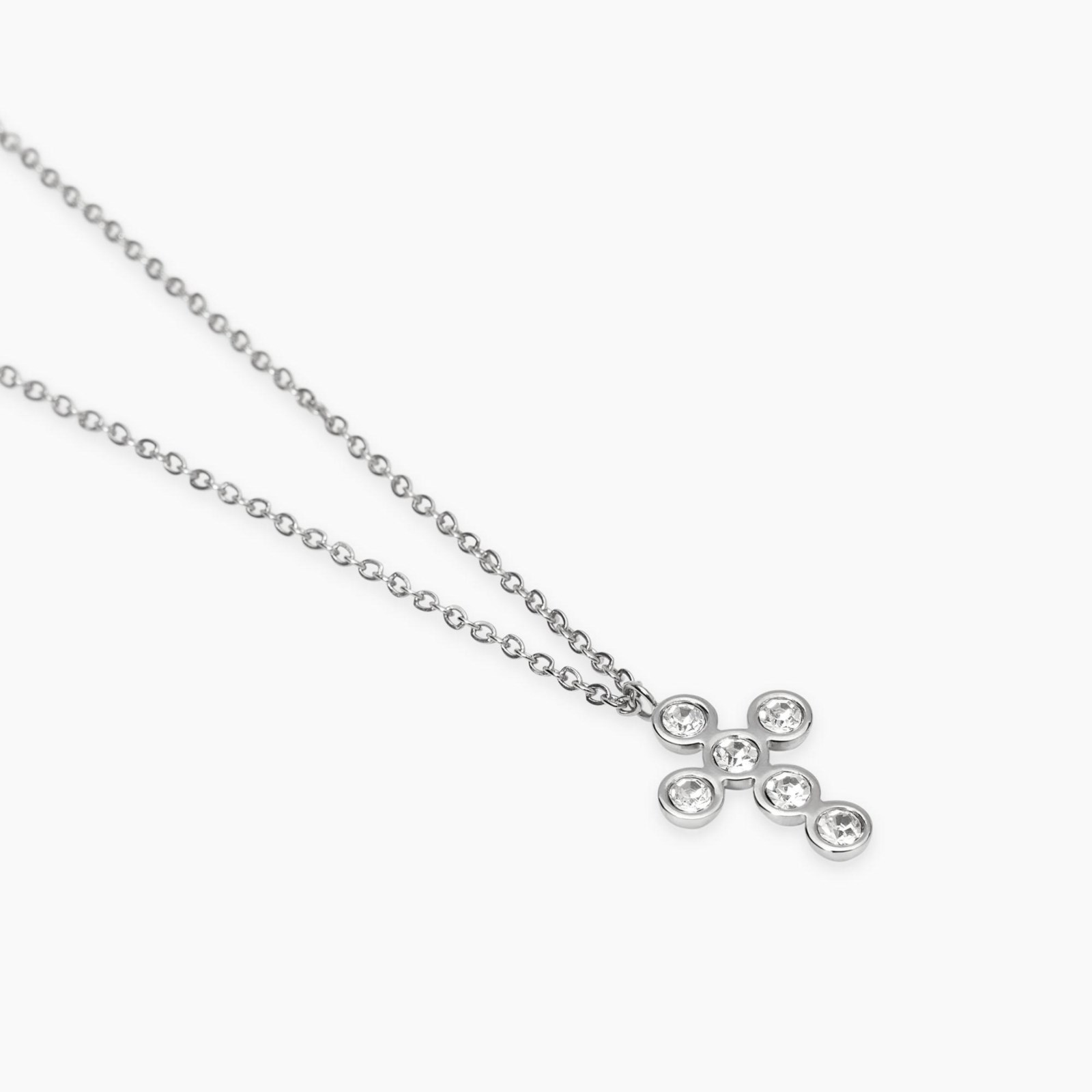 Collana donna kidult, 851043, collezione style, in acciaio con catena rolò e pendente croce con cristalli. • Dimensione croce: 13, 8x18, 4 mm • Diametro cristalli: 3 mm • Misura regolabile, lunghezza da 40 a 45 cm