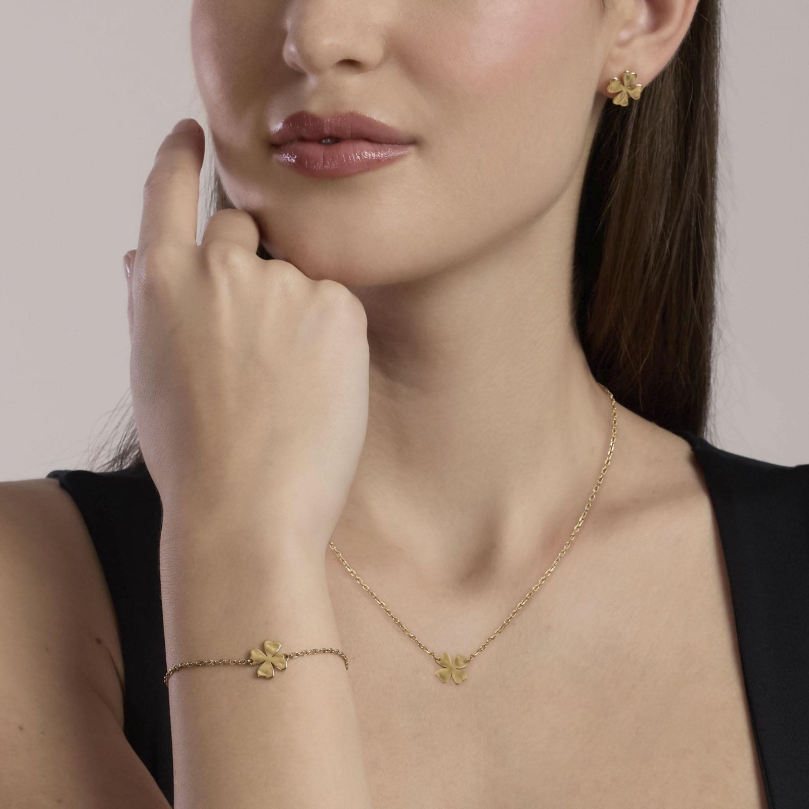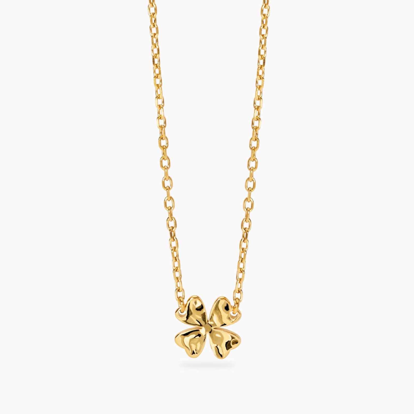 Collana donna kidult, 851095, collezione style, con catena forzatina diamantata e pendente quadrifoglio in acciaio martellato dorato. • Dimensione catena: 1, 8 mm • Dimensione quadrifoglio: 12x12 mm • Misura regolabile, lunghezza da 45 a 50 cm