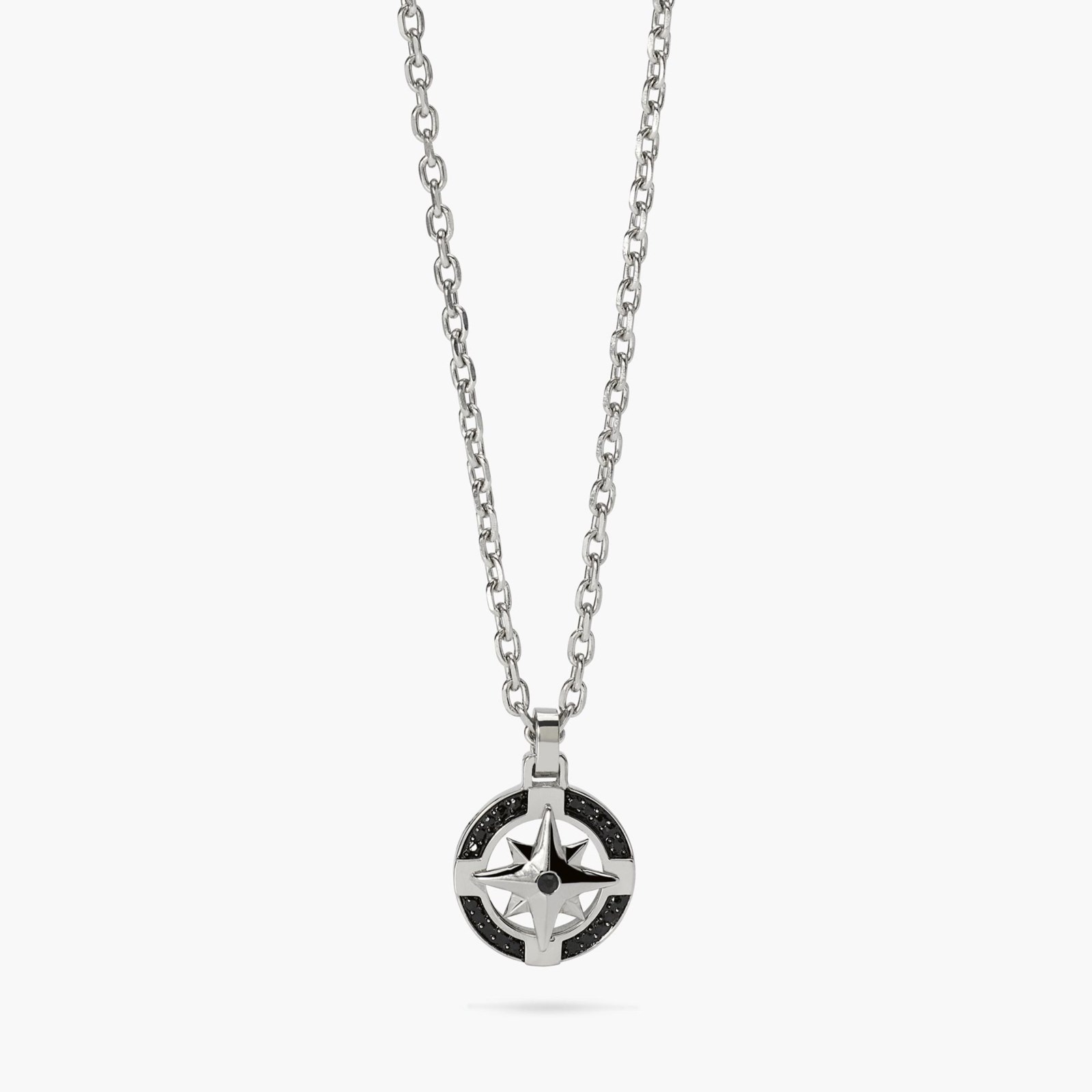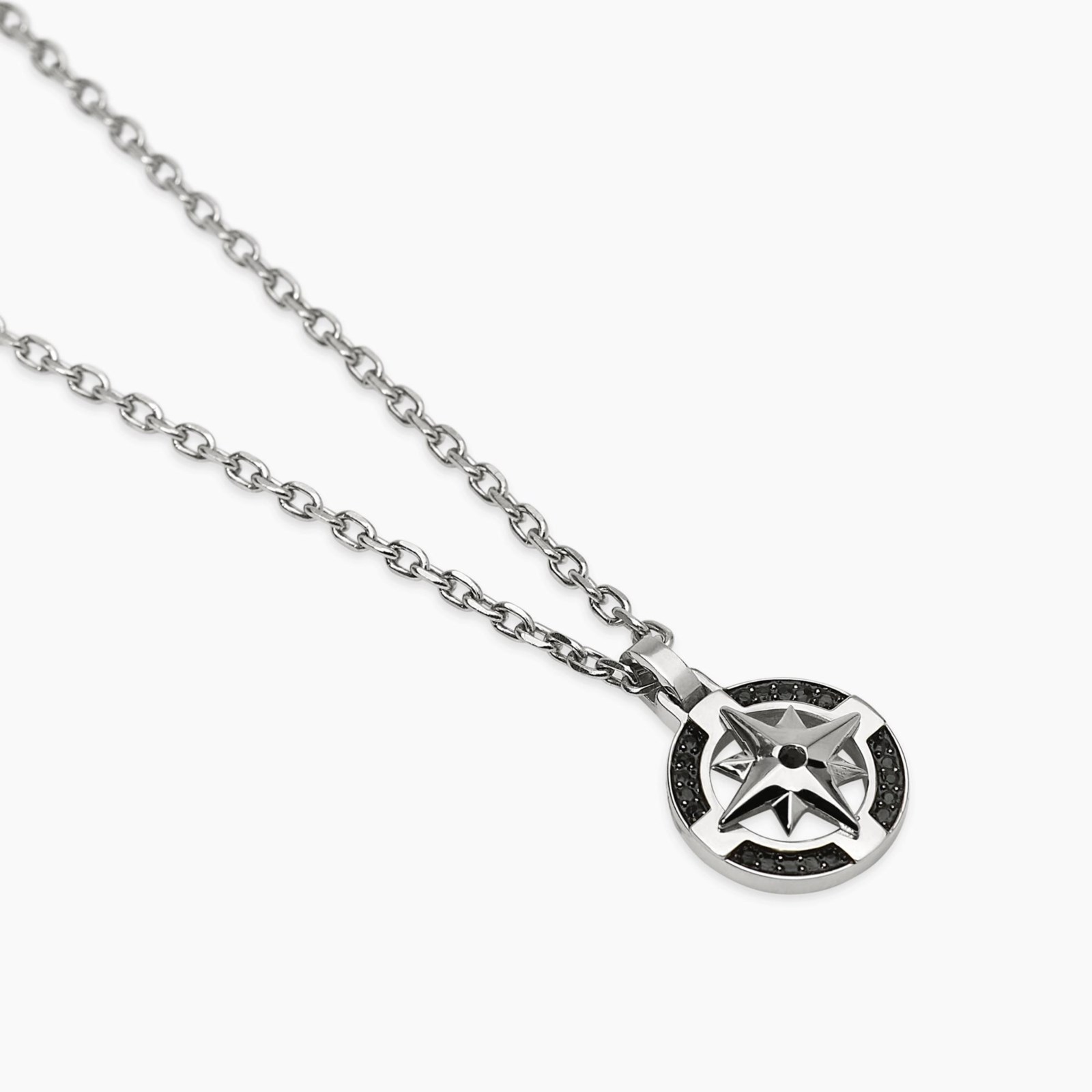 Collana uomo kidult, 851109, collezione style, in acciaio con catena forzatina diamantata e ciondolo nero con rosa dei venti e cristallo.