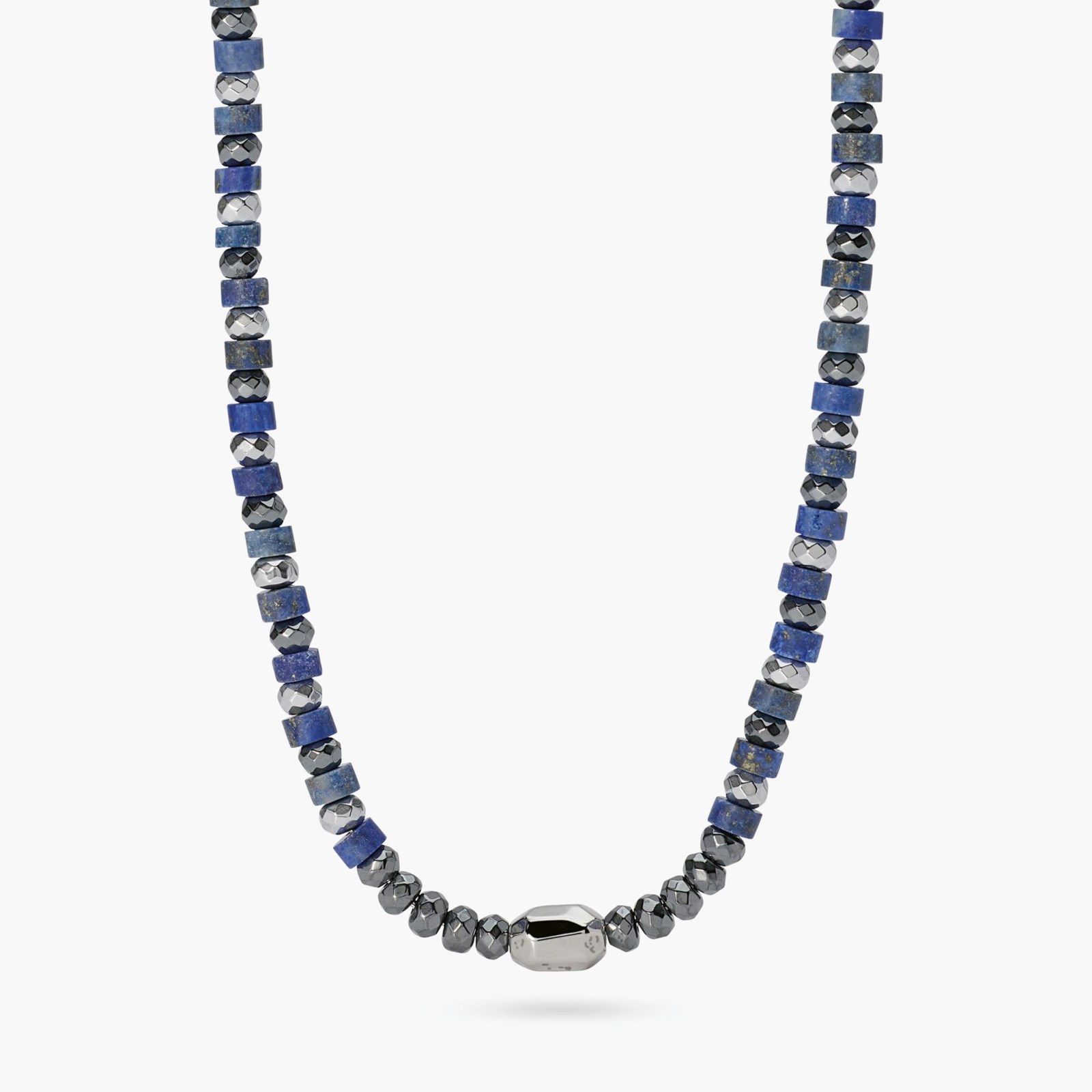 Collana uomo kidult, 851115, collezione style, in acciaio con ematite faccettata e cilindri in lapis.
