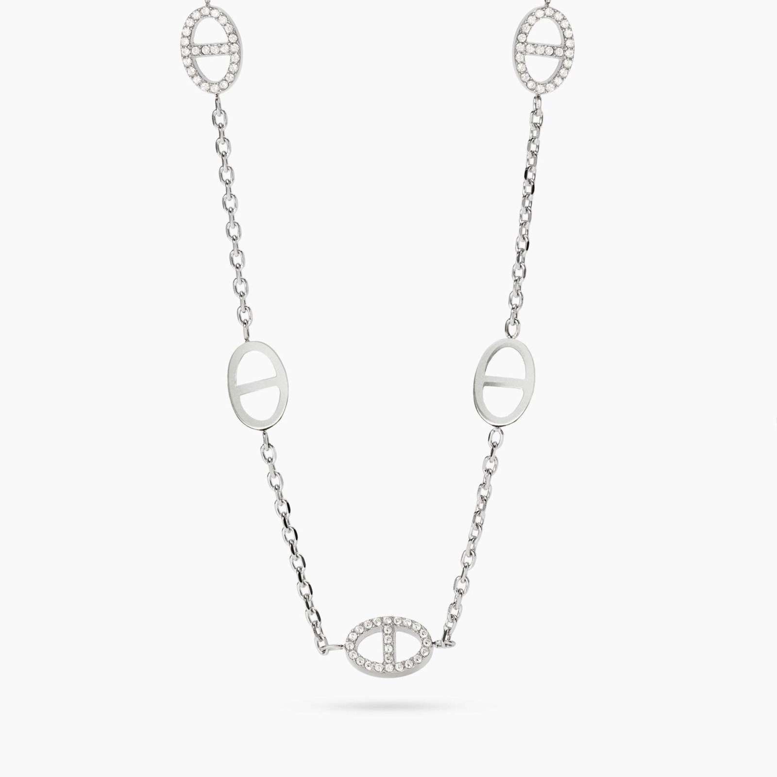 Collana donna kidult, 851130, collezione style, in acciaio con catena forzatina diamantata e staffe in cristalli.