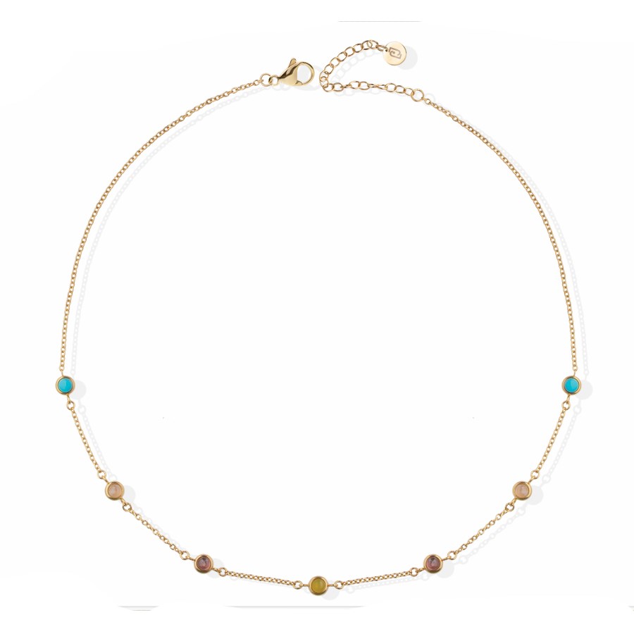 Collana donna liu jo, LJ2862, collezione essential, in acciaio dorato con pietre colorate. Lunghezza: regolabile 40+5 cm