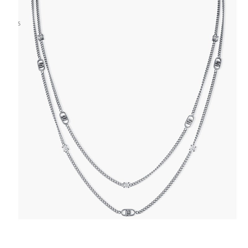 Collana donna liu jo, LJ2900, collezione essential, in acciaio con zirconi bianchi e logo. lunghezza 80cm.