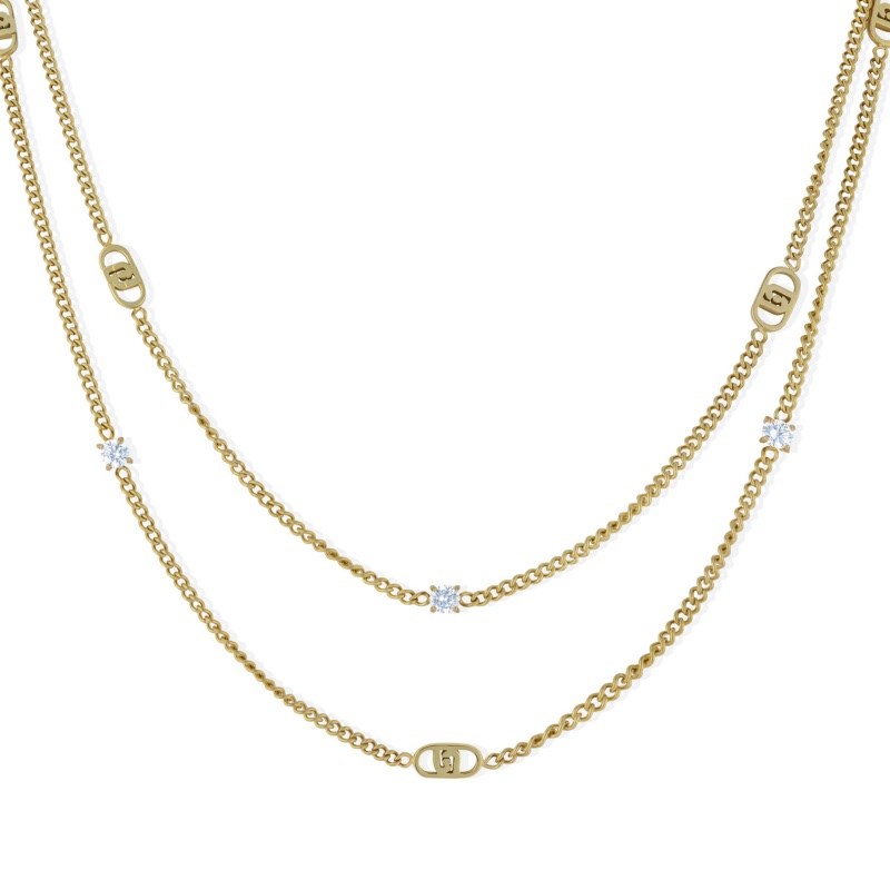 Collana donna liu jo, LJ2905, collezione essential, in acciaio dorato con zirconi bianchi e logo. Lunghezza 80 cm.