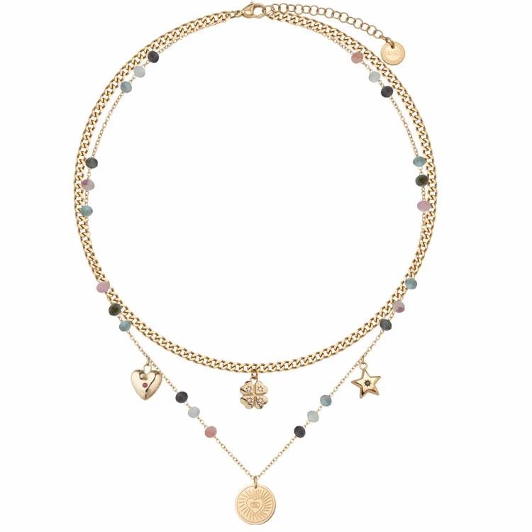 Collana donna liu jo, LJ3181, collezione essential, in acciaio dorato e cristalli, misura 50cm