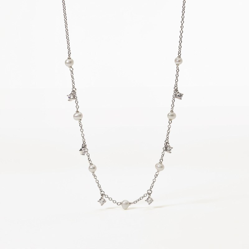 Collana donna mabina, 553457, collezione argento donna, in argento 925 con perle coltivate e zirconi, lunghezza 40cm regolabile