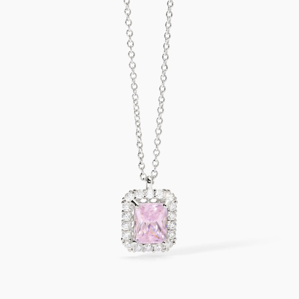 Collana donna mabina, 553652, collezione argento donna, in argento 925 rodiato con zirconi bianchi e rosa • Larghezza della catena forzatina: 1, 5 mm • Dimensione dello zircone rosa: 7 x 9, 5 mm • Diametro degli zirconi bianchi: 2 mm • Lunghezza regolabile da 40 a 45 cm