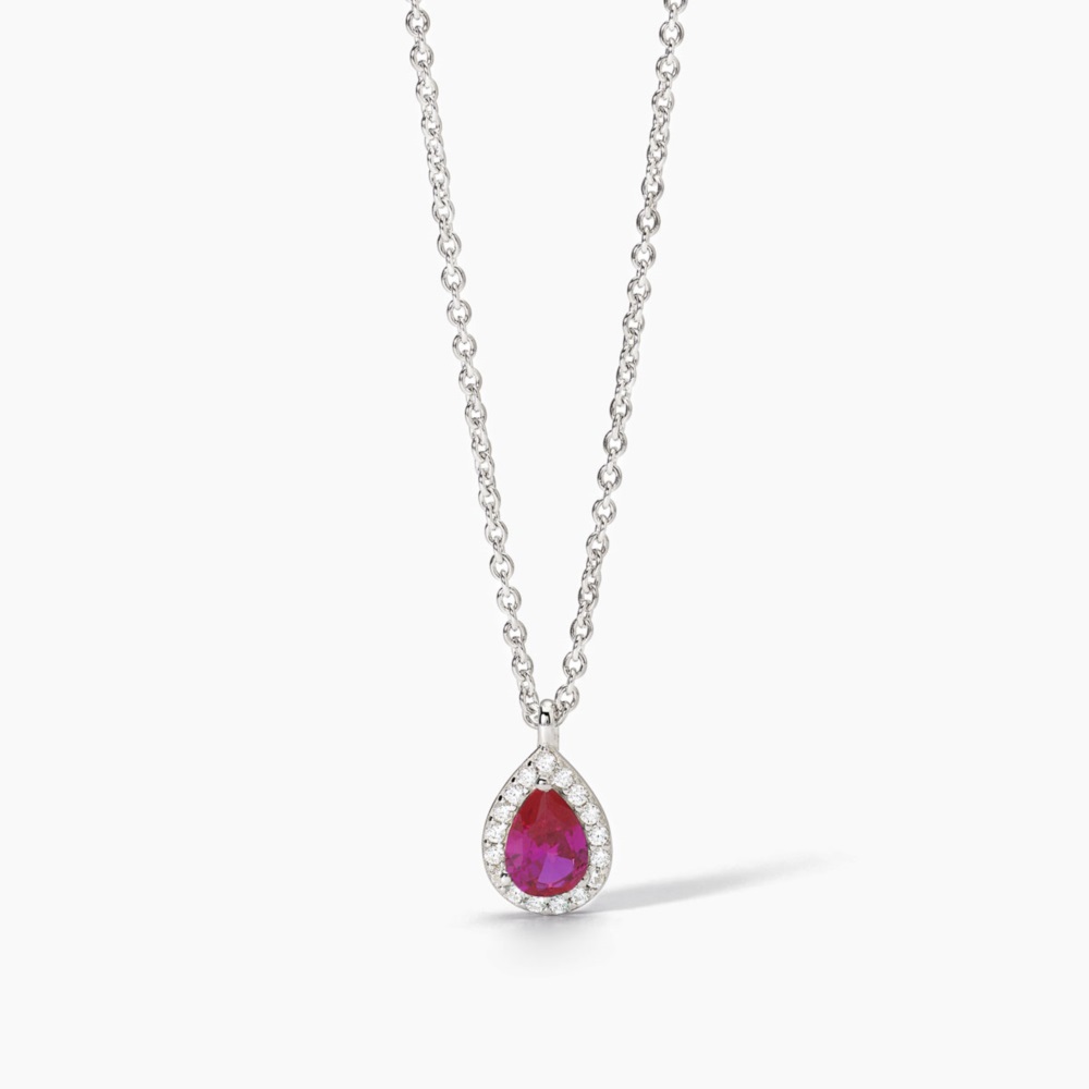 Collana donna mabina, 553664, collezione argento donna, in argento 925 rodiato con rubino sintetico e zirconi bianchi • Larghezza della catena forzatina: 1, 5 mm • Dimensione rubino sintetico: 5 x 7 mm • Diametro zirconi bianchi: 1, 3 mm • Lunghezza regolabile da 40 a 45 cm