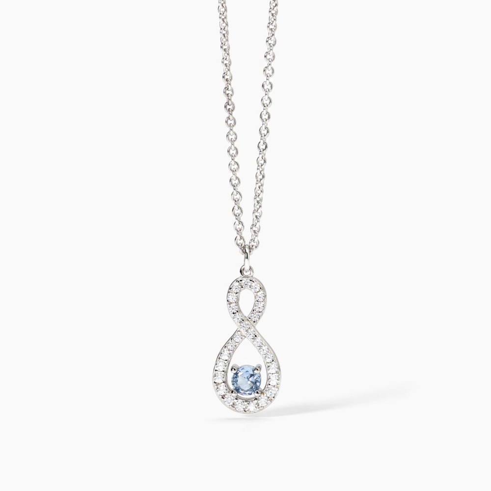 Collana donna mabina, 553675, collezione argento donna, in argento 925 rodiato con acquamarina sintetica e zirconi bianchi • Larghezza della catena forzatina: 1, 5 mm • Dimensione del pendente: 9, 5 x 18 mm • Diametro acquamarina sintetica: 4 mm • Diametro degli zirconi bianchi: 1, 5 e 1, 25 mm • Lunghezza regolabile da 40 a 45 cm