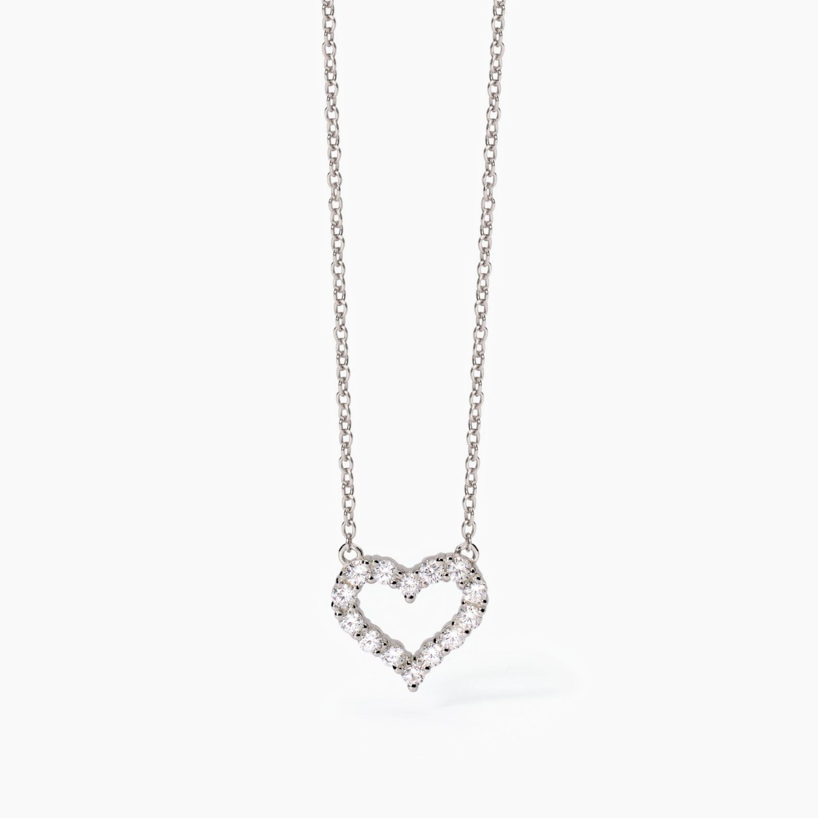Collana donna mabina, 553681, collezione argento donna, in argento rodiato con catena forzatina e ciondolo cuore con zirconi. • Larghezza della catena forzatina: 1 mm • Dimensione del pendente: 14 x 12 mm • Diametro degli zirconi: 2 mm • Misura regolabile, lunghezza da 38 a 42 cm