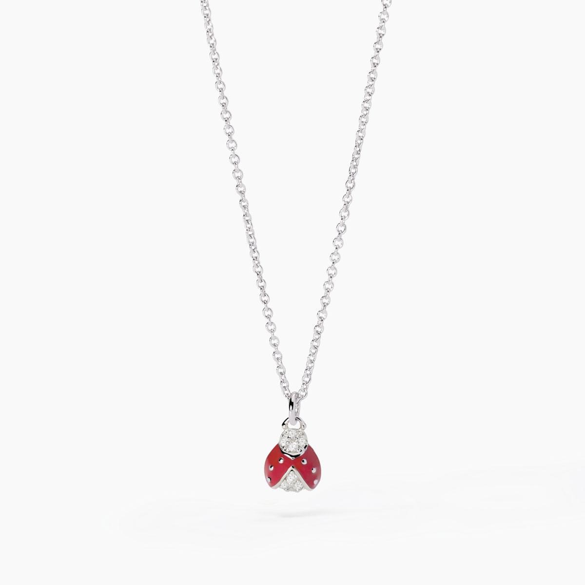 Collana donna mabina, 553708, collezione argento donna, in argento rodiato con catena forzatina e pendente smaltato a forma di coccinella con zirconi. • Dimensione coccinella: 6.5 x 8 mm • Diametro degli zirconi: 1 e 1.25 mm • Chiusura con moschettone • Misura regolabile, lunghezza da 39 a 43 cm • Materiale: Argento 925, Zirconi, Smalto