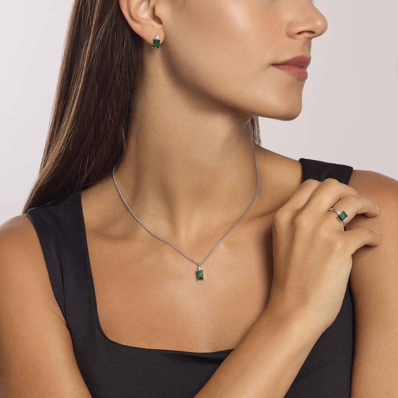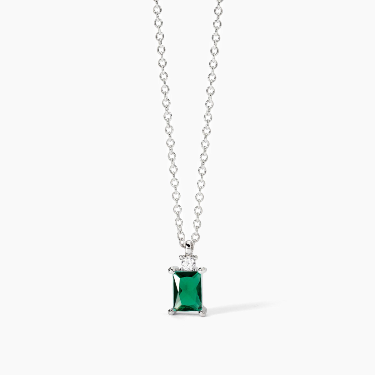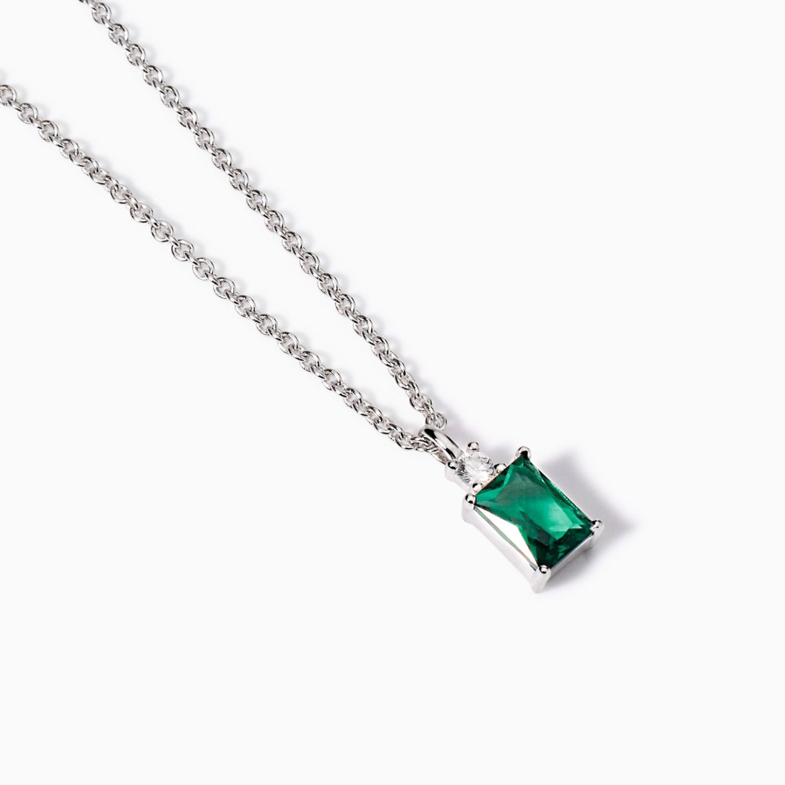 Collana donna mabina, 553734, collezione argento donna, in argento rodiato con catena rolò, zirconi e smeraldo sintetico taglio princess. • Larghezza della catena: 1, 5 mm • Dimensione smeraldo sintetico: 5 x 7 mm • Diametro degli zirconi bianchi: 2, 5 mm