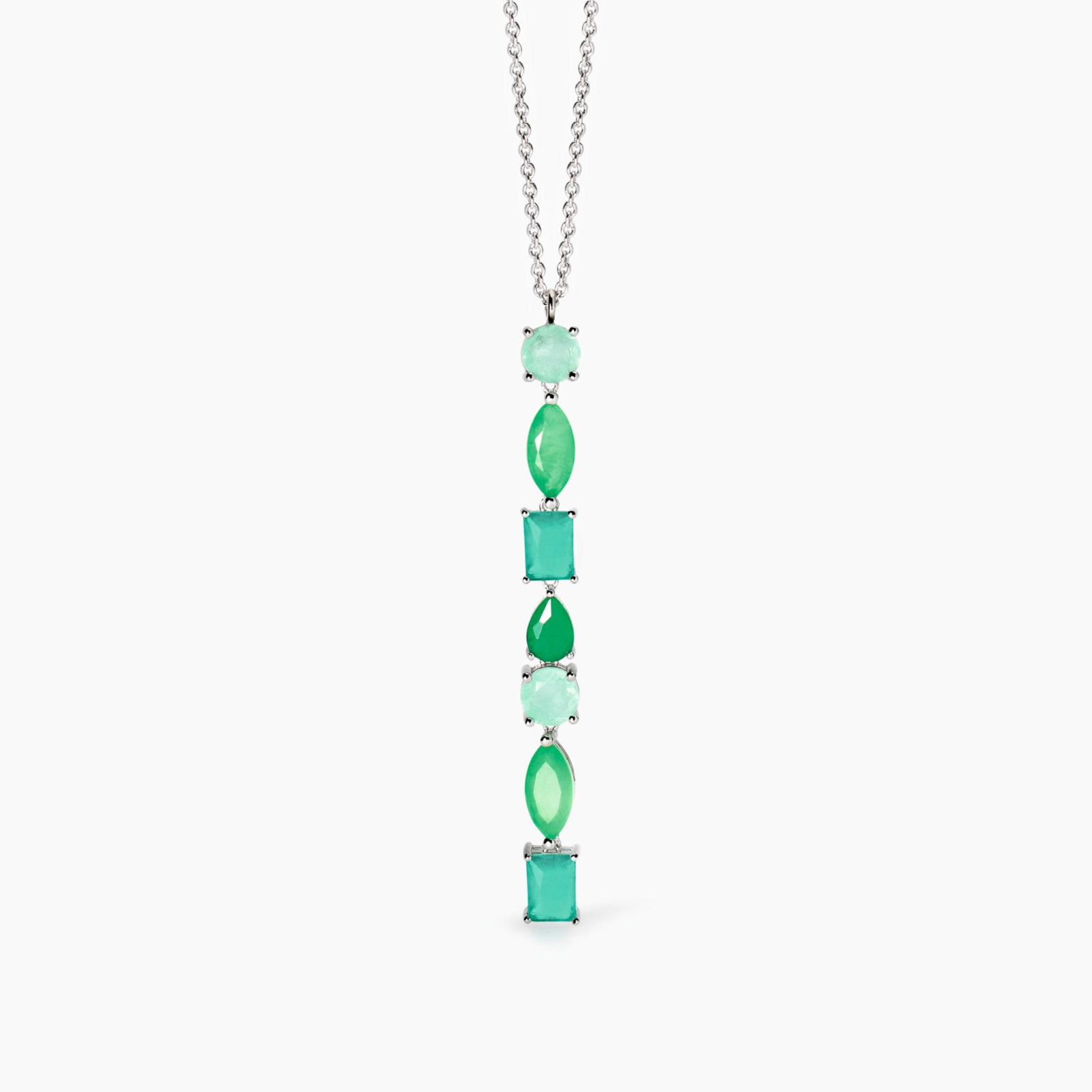 Collana donna mabina, 553737, collezione argento donna, in argento rodiato con catena rolò, navette e pendente con elementi in fusion stone di glass verde e cristallo di rocca taglio baguette e taglio goccia. • Larghezza della catena: 1, 5 mm • Dimensione del pendente: 6 x 60, 5 mm • Lunghezza regolabile da 40 a 45 cm