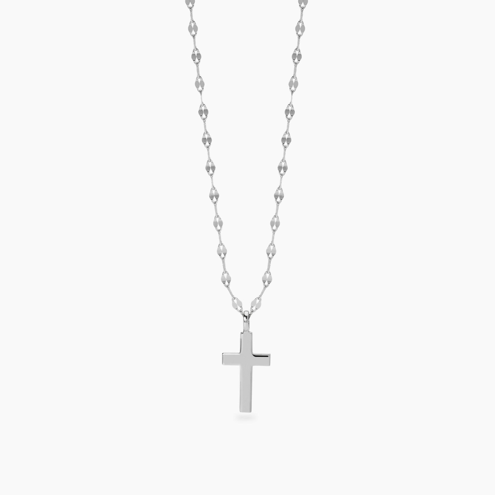 Collana donna amen, 553890, collezione argento donna, in argento rodiato con catena fancy e ciondolo croce.