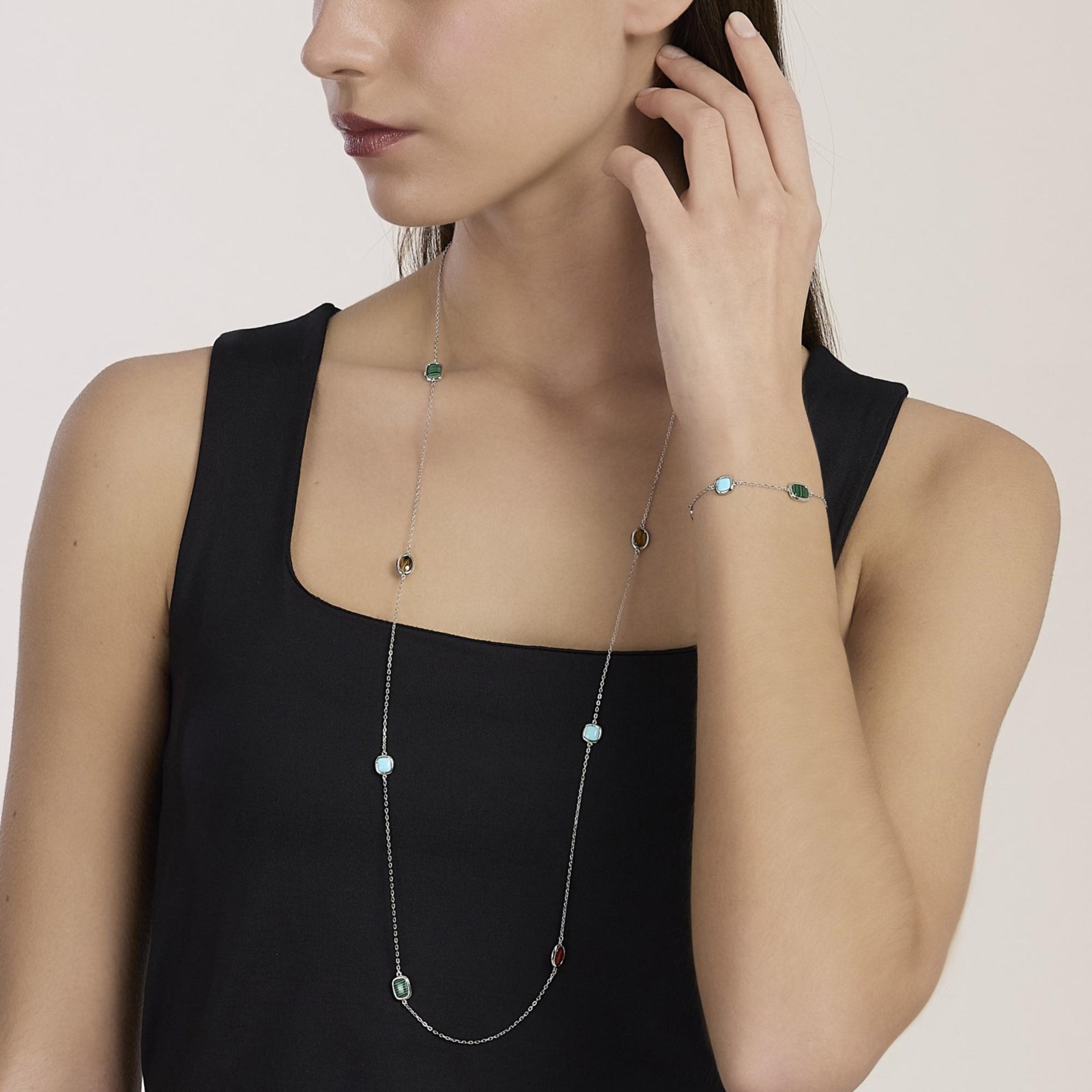 Collana donna mabina, 553891, collezione argento donna, in argento rodiato con catena forzatina diamantata e pietre multicolor di diverso taglio.