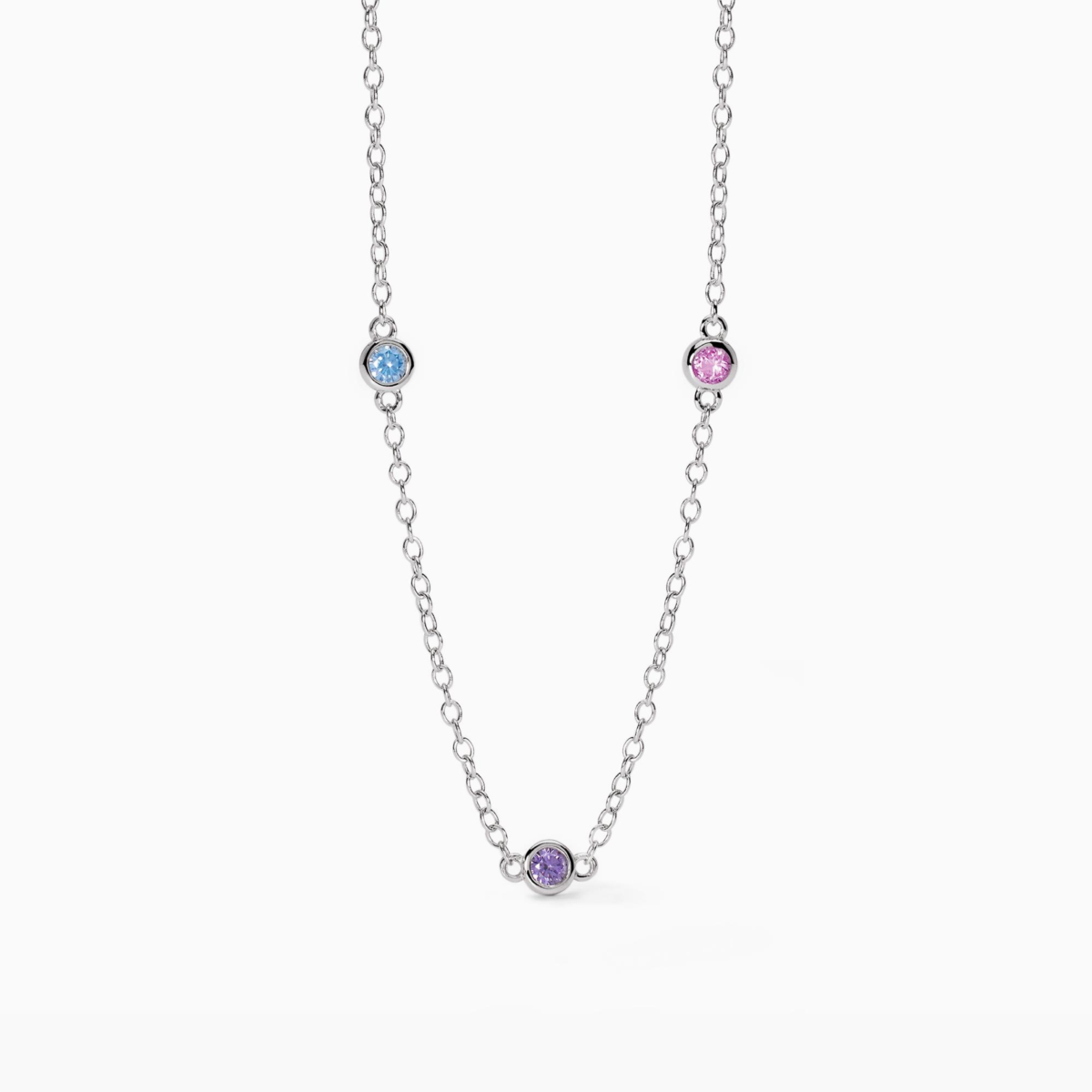 Collana donna mabina, 553691, collezione argento donna, regolabile da bambina in argento rodiato con catena forzatina, tormaline rosa sintetiche e zirconi multicolor. • Diametro tormaline sintetiche e zironi: 2.5 mm • Chiusura con moschettone • Misura regolabile, lunghezza da 35 a 39 cm • Materiale: Argento 925, Zircone, Smalto