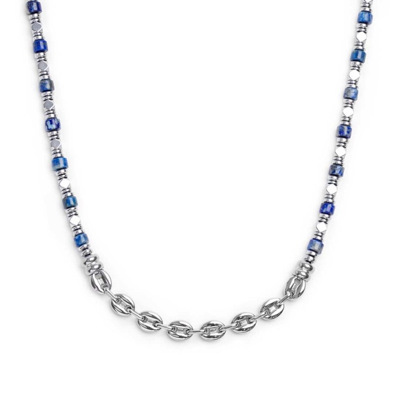 Collana uomo marlù, 30CO0001, collezione icons, in acciaio con rondelle in sodalite alternati ad elementi in ematite ed acciaio.