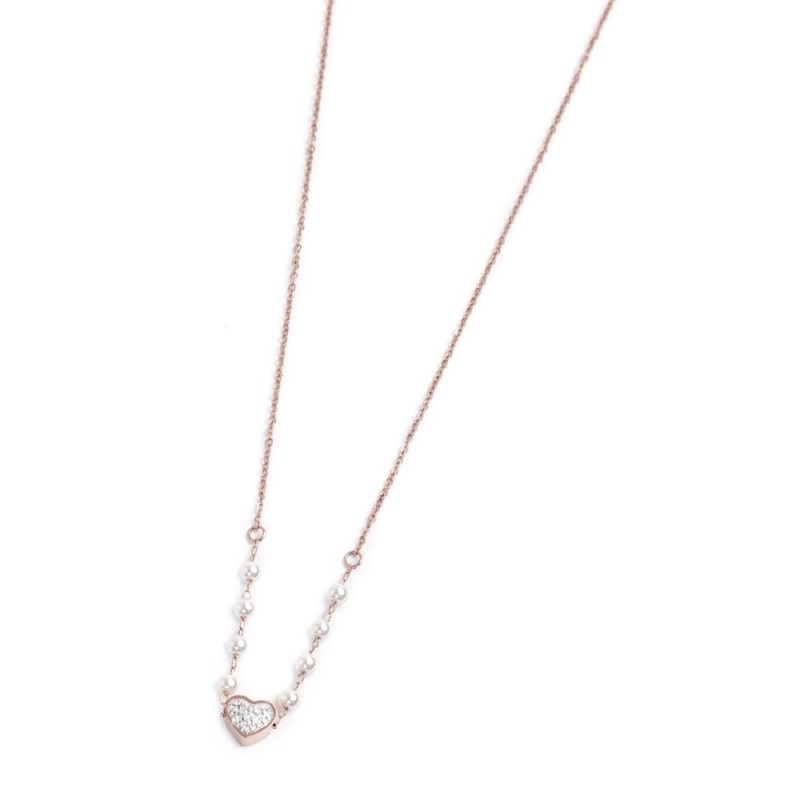 Collana donna marlù, 15CN031R-W, collezione nel mio cuore, in acciaio rosato con catena cross e con catena con perle.
