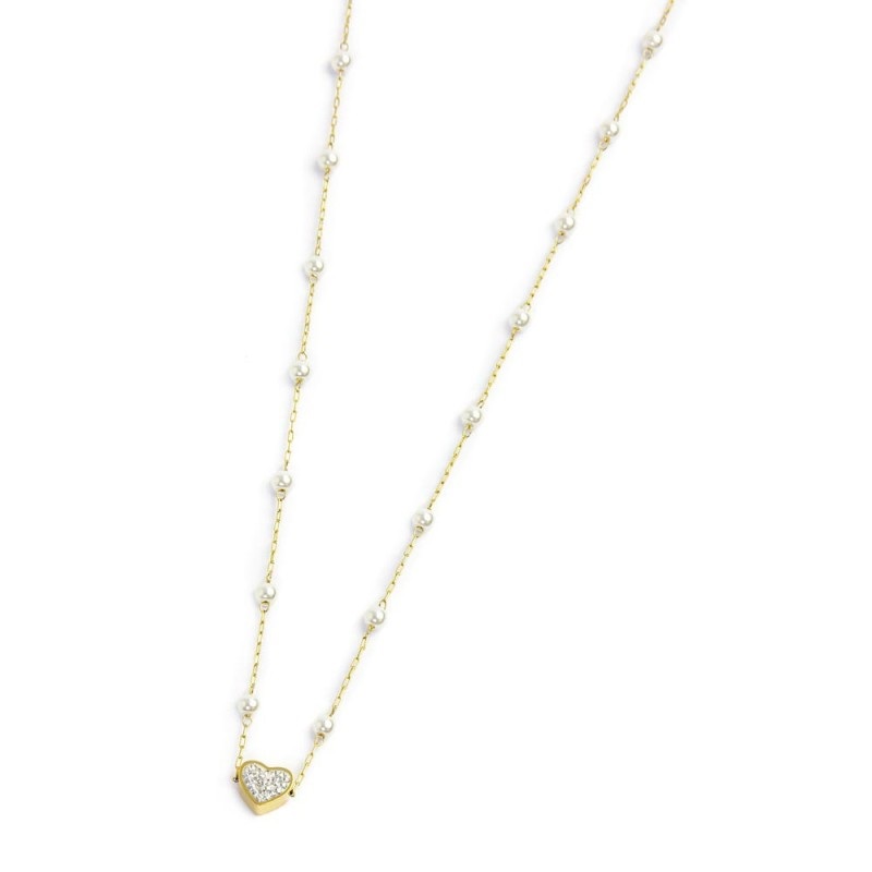 Collana donna marlù, 15CN032G-W, collezione nel mio cuore, in acciaio dorato con catena con perle.