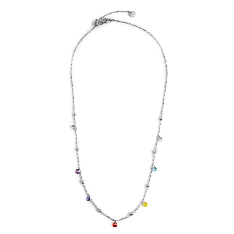 Collana donna marlù, 2CO0064-RGB, collezione sparkles, in acciaio con catena cross, con cubic zirconia e sfere.