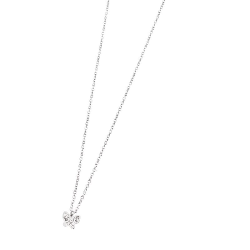 Collana donna marlù, 18CN040, collezione time to, in acciaio con pendente a forma di farfalla con cristalli, lunghezza 38.6 cm con estensione di 4.4 cm.