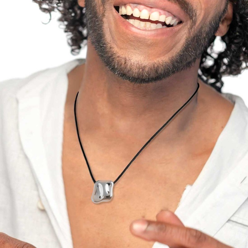 Collana unisex marlù, 33CO0031-N, collezione vision, in acciaio e cordino nero, ciondolo misura 2, 1x2cm, lunghezza totale 70cm
