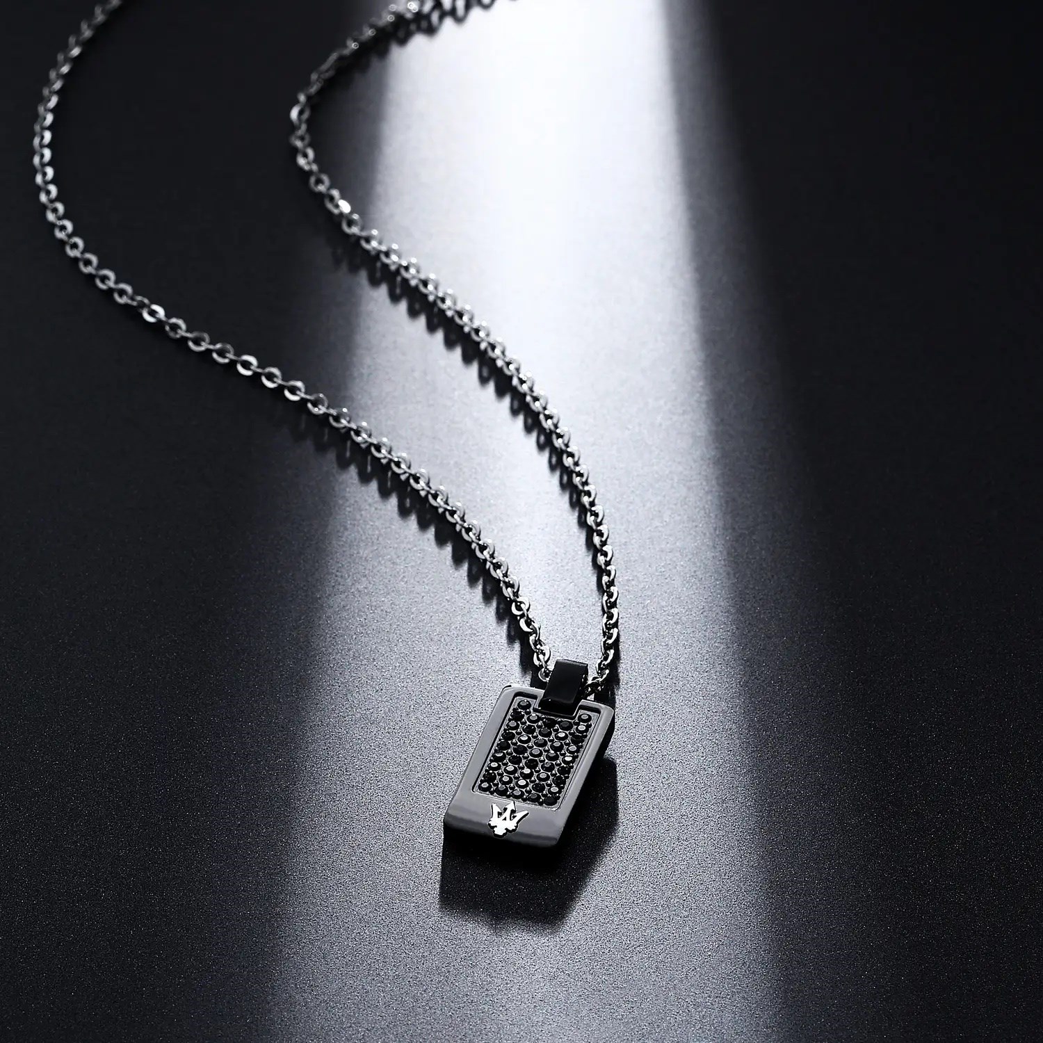 Collana uomo maserati, JM424AVD75, collezione iconic, in acciaio nero
