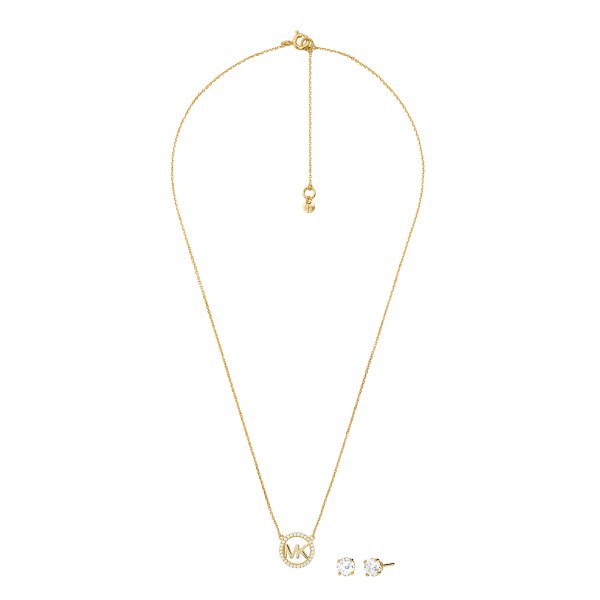 Collana e orecchini donna michael kors, MKC1260AN710, collezione premium, in argento 925 dorato e cristalli, lunghezza 40cm+5cm orecchini in argento 925 dorato e cristalli