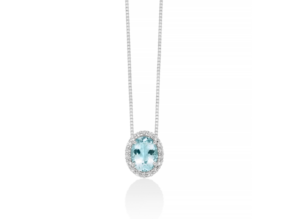 Collana donna miluna, CLD4718, collezione acquamarina Oro 750/1000 Nr 18 Diamanti naturali Pt.tot 16, 2 Col.G Pur.SI Taglio Brillante Rotondo Nr 1 Acquamarine naturali Ovale mm 8x6 Ct 1