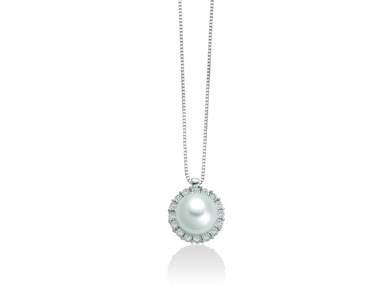 Collana donna miluna, Pcl5748, collezione Collier Di Perle, in Oro 750/1000 Nr 18 Diamanti naturali Pt.tot 5, 04 Col.G Pur.SI Taglio Brillante Rotondo Nr 1 Perle R Col.