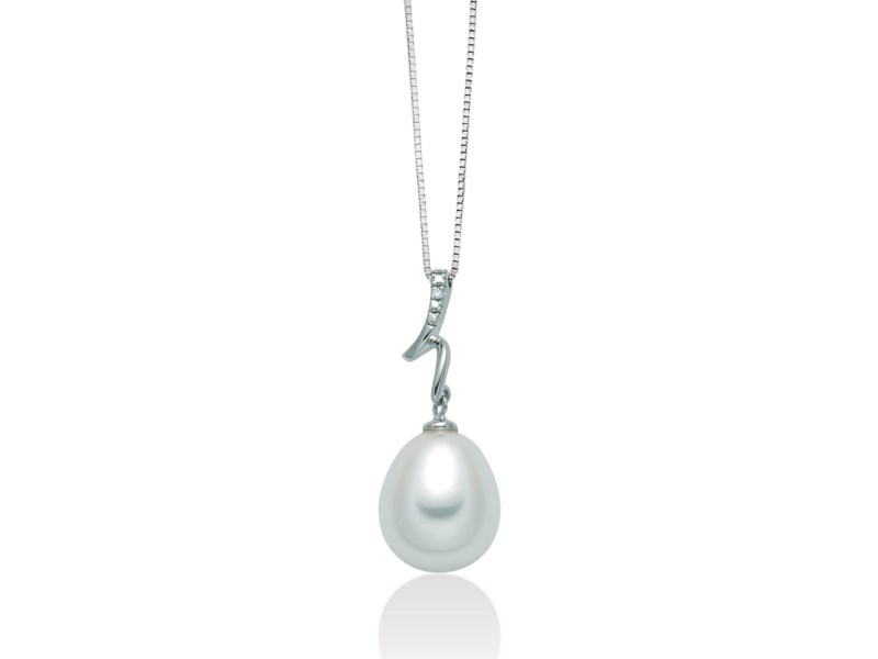 Collana donna miluna, Pcl5854, collezione Collier Di Perle. Oro 750/1000 Nr 1 Diamanti naturali Pt.tot 0, 4 Col.G Pur.SI Taglio Brillante Rotondo Nr 1 Perle VVR drop Col.
