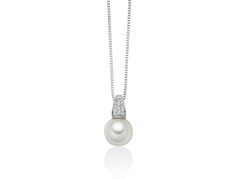 Collana donna miluna, Pcl6257, collezione Collier Di Perle. Oro 750/1000 Nr 12 Diamanti naturali Pt.tot 5 Col.G Pur.SI Taglio Brillante Rotondo Nr 1 Perle Akoya Antiqua Spec.