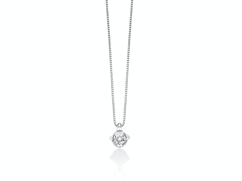 Collana donna miluna, Cld4125-019g7, collezione cuore. Oro 750/1000 Nr 1 Diamanti naturali Pt.tot 19 Col.G Pur.SI Taglio Brillante Rotondo Catenina veneziana bianca Microfusione Griffes