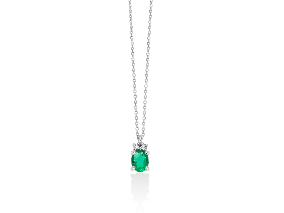 Collana donna miluna, CLD4651X, collezione gemme 375 Oro 375/1000 Nr 2 Diamanti naturali Pt.tot 1, 12 Col.G Pur.SI Nr 1 Smeraldi naturali Ovale mm 5x4 Ct 0, 32