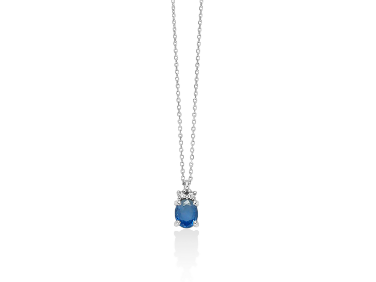 Collana donna miluna, CLD4661X, collezione gemme 375 Oro 375/1000 Nr 2 Diamanti naturali Pt.tot 1, 12 Col.G Pur.SI Nr 1 Zaffiri naturali Col.