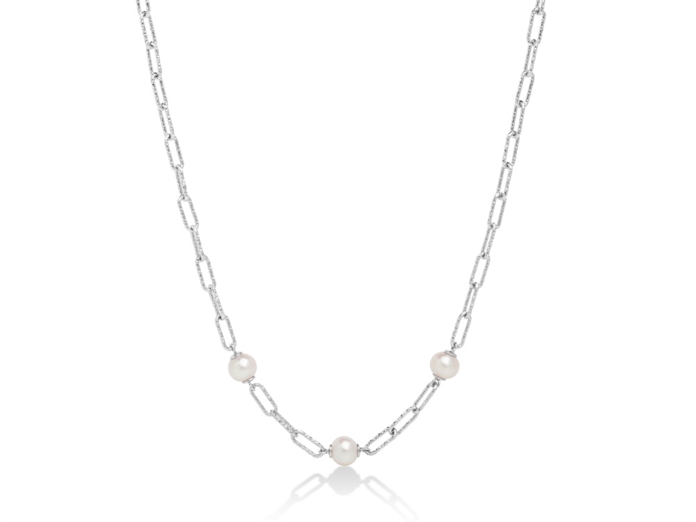 Collana donna miluna, Pcl6065, collezione miss italia, in argento 925, perle bianche coltivate 6, 5/7mm con speciale lavorazione diamantata