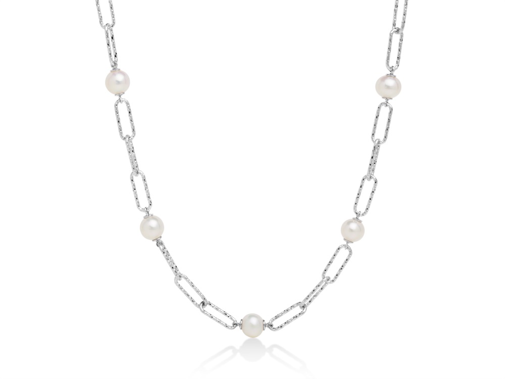 Collana donna miluna, Pcl6066, collezione miss italia, in argento 925, perle bianche coltivate 7, 5/8mm con speciale lavorazione diamantata