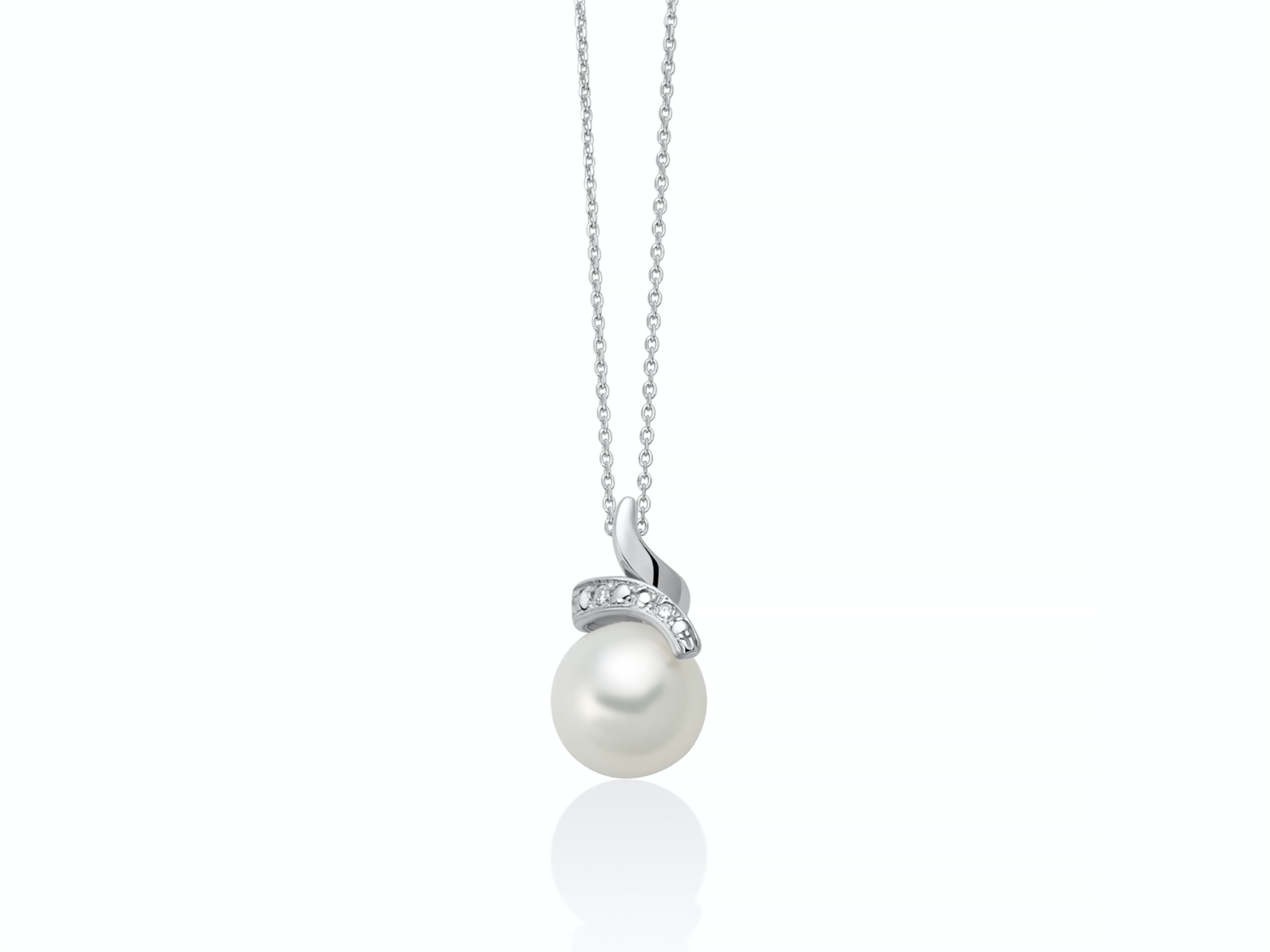 Collana donna miluna, PCL6730X, collezione perle 375, in oro 375 perle e diamanti. Oro 375/1000 Nr 2 Diamanti naturali Pt.tot 0, 81 Col.G Pur.SI Nr 1 Perle vere Bottone Col.